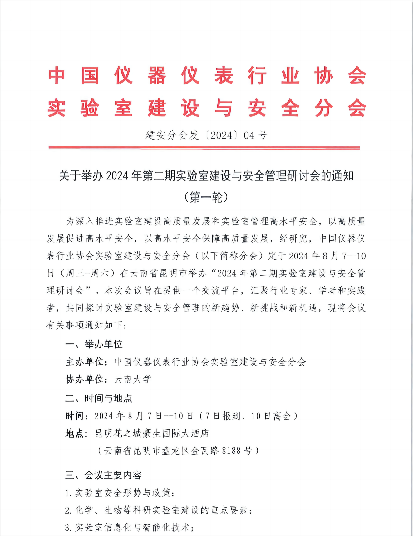 關(guān)于舉辦2024年第二期實(shí)驗(yàn)室建設(shè)與安全管理研討會(huì)