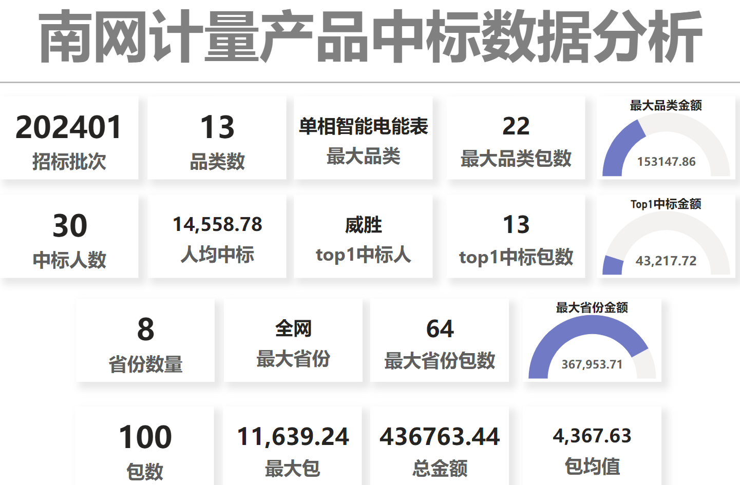 總金額43.68億元,30家企業實現中標(威勝集團+威勝信息計為1家,正泰電器+正泰儀表計為1家),威勝以4.32億元位列各企業第一名,華立中標3.97億元第二,三星3.80億元第三,鼎信3.53億元第四。