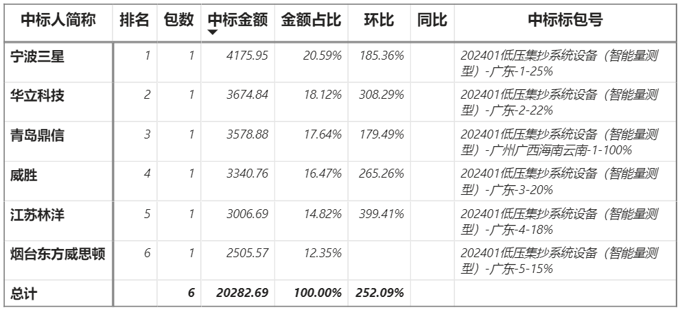 總金額1.97億元,6家企業實現中標,華立中標最大包5244.56萬元;