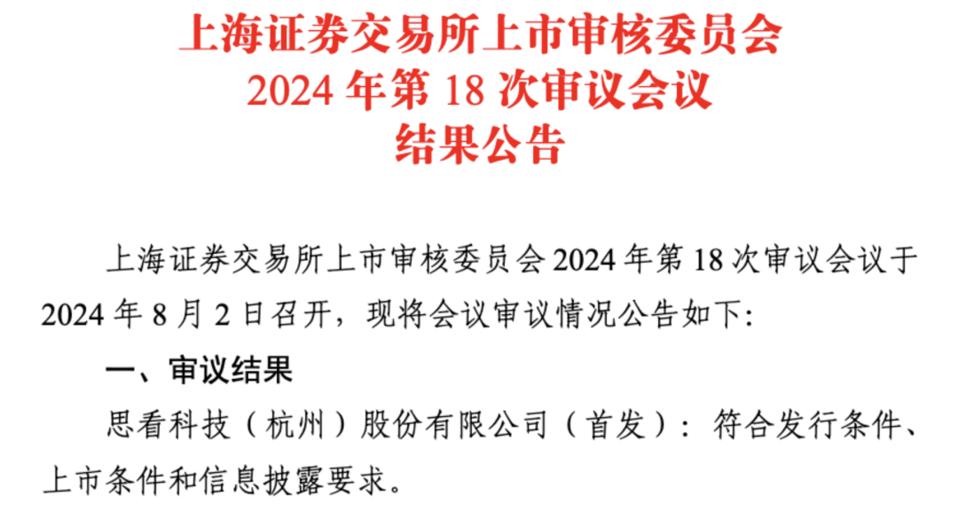 近日,上交所官網(wǎng)更新上會(huì)結(jié)果公告,思看科技(杭州)股份有限公司(下稱“思看科技”)成功過(guò)會(huì)。