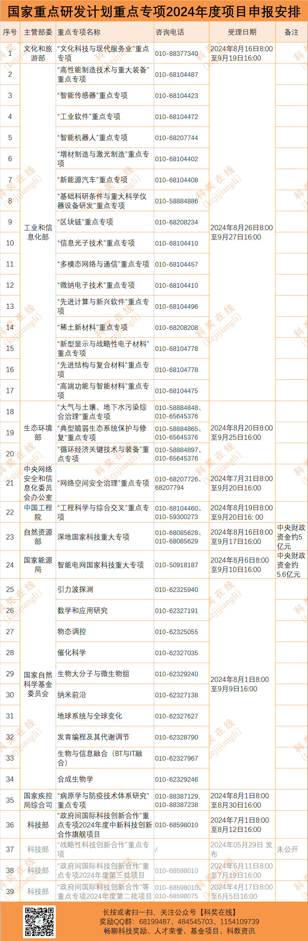 根據黨中央、國務院關于科技計劃管理改革的有關要求,國家重點研發計劃重點專項、國家科技重大專項主責單位由科技部調整至各部委。現將2024年度國家重點研發計劃申報安排匯總如下,供大家參考(具體以科技部官網消息為準)。