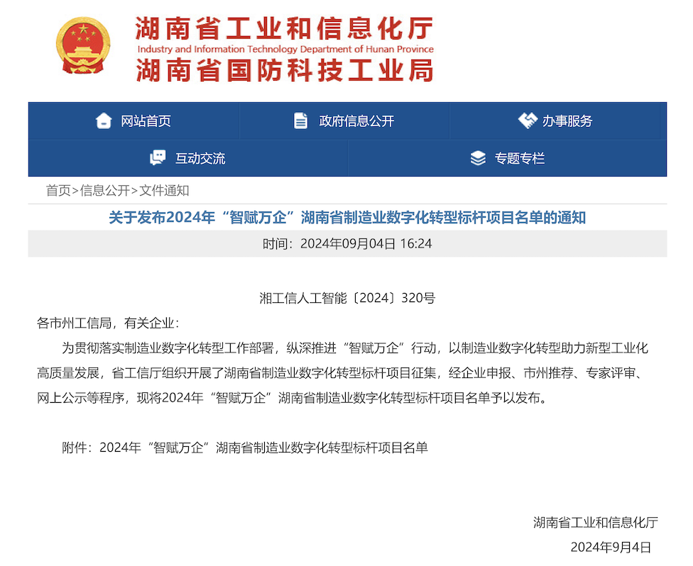 近日,湖南省工信廳發布2024智賦萬企湖南省制造業數字化轉型標桿項目、湖南省人工智能賦能新型工業化典型應用場景兩項名單,經過嚴格評選和審查,威勝信息《智能化車間的數字化改造項目》《智能化車間的生產制造智慧化》榮耀入選。