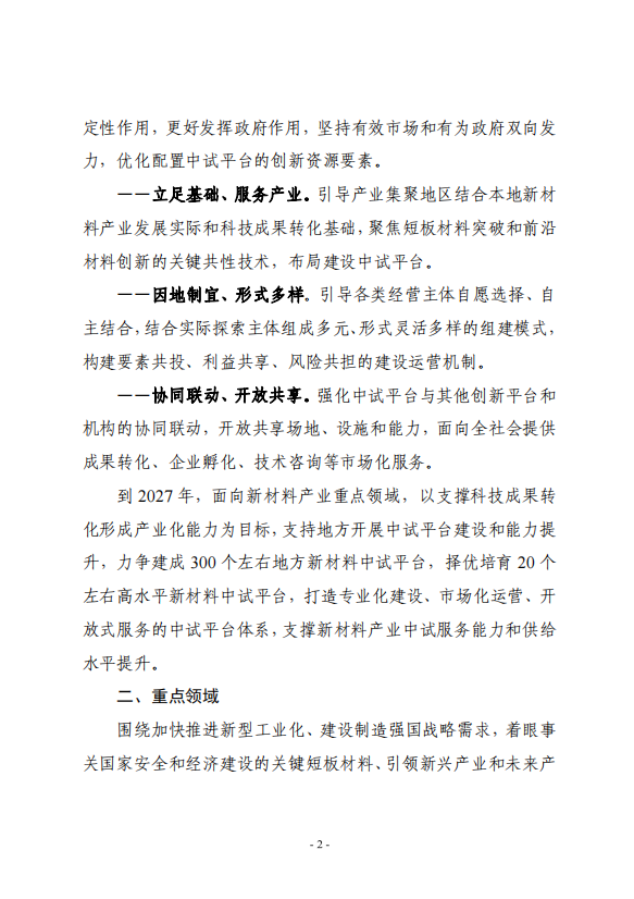 現(xiàn)將《新材料中試平臺建設(shè)指南(2024—2027年)》印發(fā)給你們,請結(jié)合實際認真抓好落實。