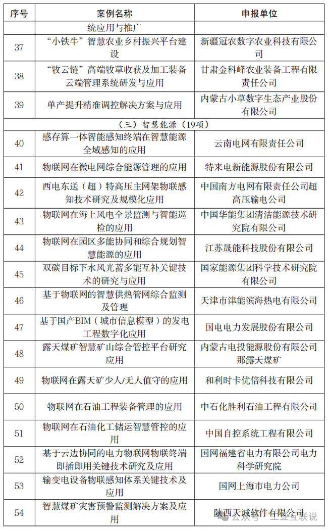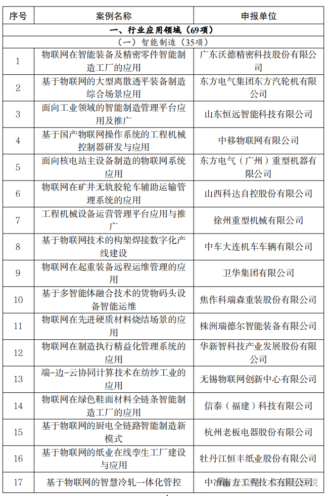 一、行業應用領域:智能制造(35項)、智慧農業(4項)、智慧能源(19項)、智慧物流(6項)、智能建造(5項)。