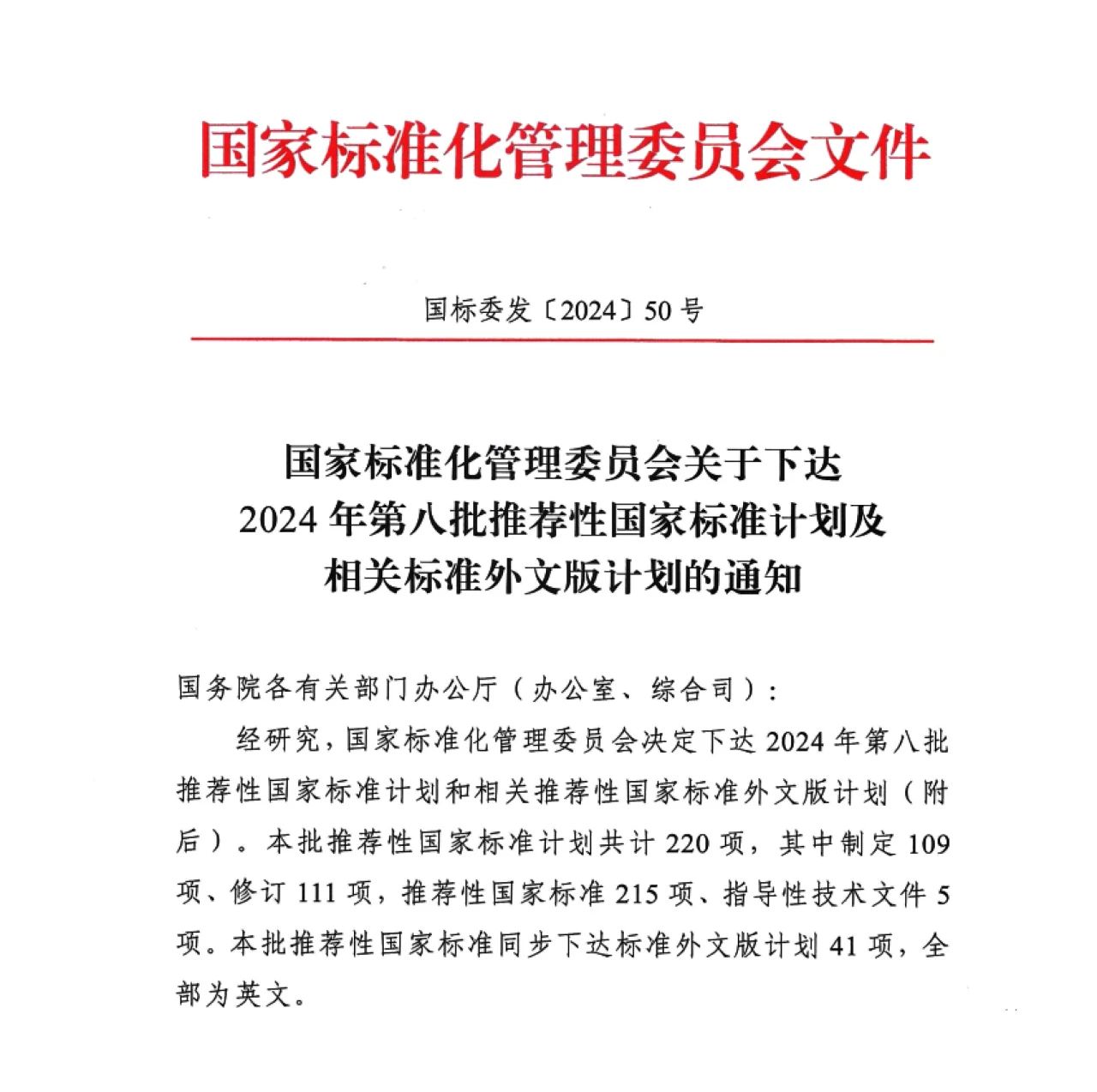 2024年10月26日,國家標準化管理委員會決定下達2024年第八批推薦性國家標準計劃和相關(guān)推薦性國家標準外文版計劃。