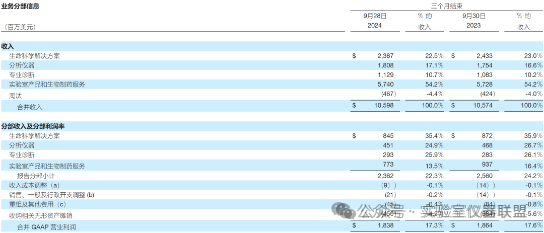 根據報告,賽默飛 2024 年本季度的收入為 106 億美元,而 2023 年為 105.7 億美元。收入增長、有機收入和核心有機收入均較第二季度環比提高,與去年同期持平。