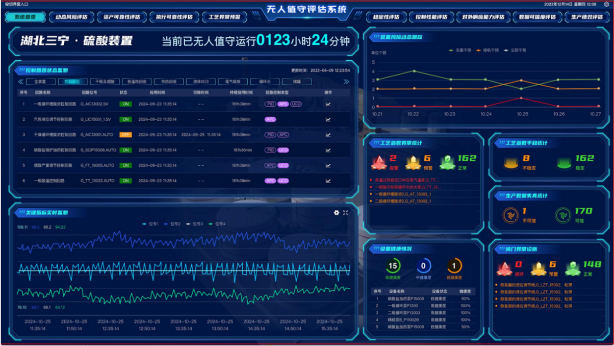 基于AI模型,中控技術攜手湖北三寧開發裝置動態響應與控制性能評估技術、裝置穩態檢測與工藝預警技術、生產績效動態評估與實時優化技術、基于動態風險評估決策技術、儀表閥門及設備異常識別診斷技術,構建全方位智能感知與評估體系,為裝置裝上“智慧大腦”,替代操作工進行7×24h智能值守,對裝置運行狀態進行自主監督和自主優化,全面替代人接管生產裝置。