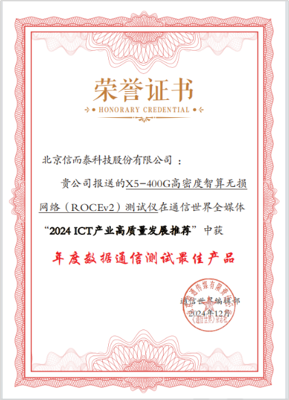 當前,ICT行業(yè)正經(jīng)歷著前所未有的變革與發(fā)展。隨著5G技術(shù)的廣泛應(yīng)用、云計算的蓬勃興起以及人工智能與物聯(lián)網(wǎng)的深度融合,行業(yè)競爭愈發(fā)激烈,ICT企業(yè)逐鹿行業(yè)前沿,或攻堅技術(shù),或打磨產(chǎn)品,或拓展應(yīng)用,全力探索高質(zhì)量發(fā)展之路。12月18日,2025 ICT行業(yè)趨勢年會在北京舉辦。會議期間,通信世界“2024 ICT產(chǎn)業(yè)高質(zhì)量發(fā)展推薦”正式發(fā)布。“X5-400G高密度智算無損網(wǎng)絡(luò)(ROCEv2)測試儀”入選“2024 ICT產(chǎn)業(yè)高質(zhì)量發(fā)展推薦”。