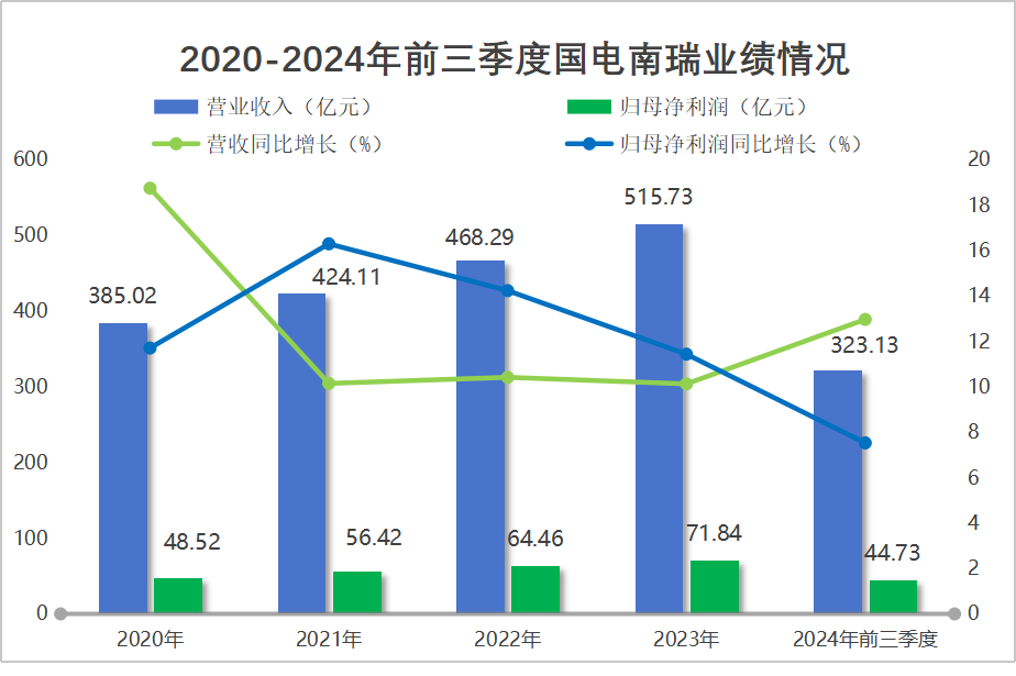 2020到2023年,國電南瑞營收從385.02億增長到515.73億,年復合增長率為10.23%;歸母凈利潤從48.52億增長到71.84億,年復合增長率為13.98%,業績增長穩健。