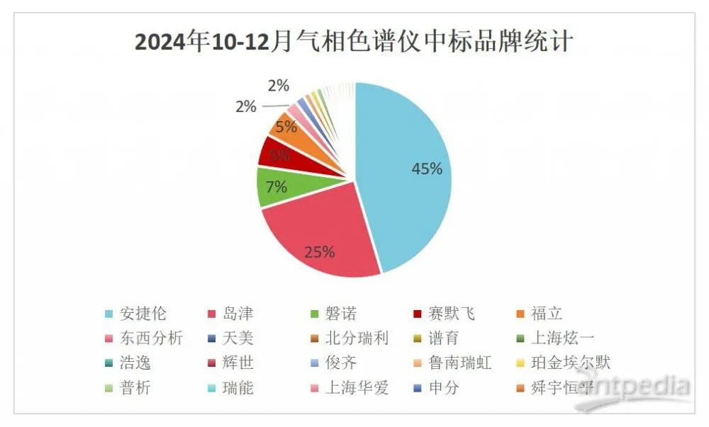 2024年全年的中標(biāo)數(shù)據(jù)來(lái)看,國(guó)產(chǎn)品牌的氣相色譜儀總中標(biāo)占比已達(dá)到25%,即占據(jù)了市場(chǎng)的四分之一份額。這一成績(jī)不僅展現(xiàn)了國(guó)產(chǎn)品牌的強(qiáng)勁發(fā)展勢(shì)頭,也凸顯了國(guó)產(chǎn)氣相色譜儀在市場(chǎng)中日益重要的地位,未來(lái)有望進(jìn)一步突破國(guó)際品牌的市場(chǎng)壟斷,實(shí)現(xiàn)更大的發(fā)展。