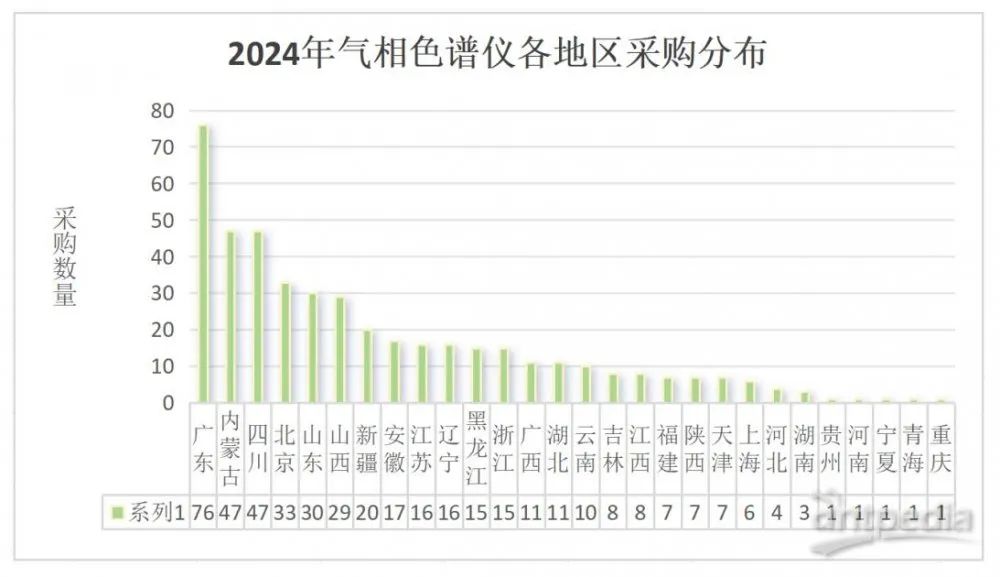 20241-12月,全國(guó)共有28個(gè)省市發(fā)布了氣相色譜儀的采購(gòu)需求。其中,廣東、內(nèi)蒙古和四川的采購(gòu)項(xiàng)目數(shù)量位居前三,分別發(fā)布了76臺(tái)(套)、47臺(tái)(套)和47臺(tái)(套)的采購(gòu)需求。此外,北京、山東、山西和新疆的采購(gòu)需求也較為顯著,分別發(fā)布了33臺(tái)(套)、30臺(tái)(套)、29臺(tái)(套)和20臺(tái)(套)。