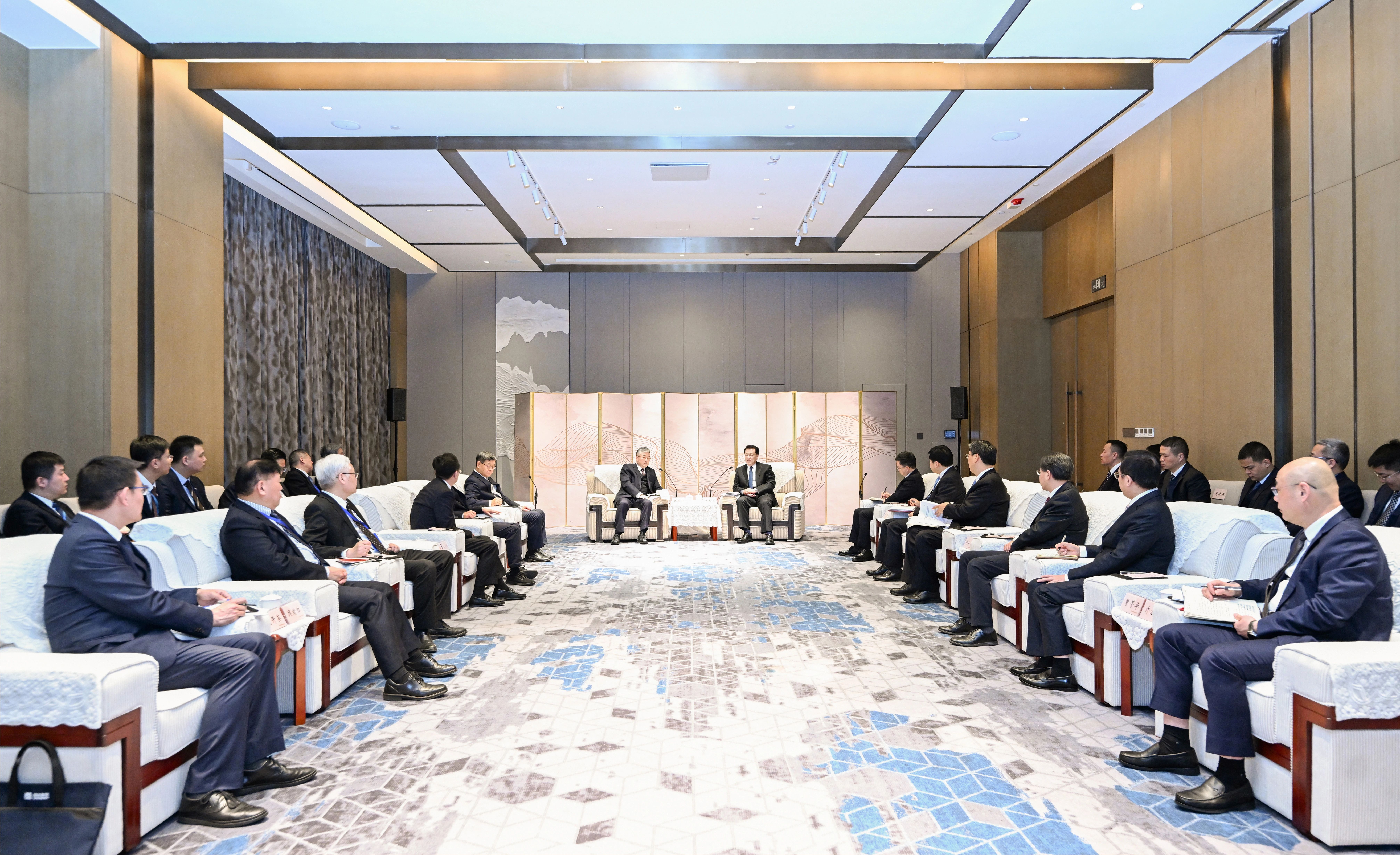 4月1日上午,市委書記袁家軍會見中國機械工業集團黨委書記、董事長張曉侖等嘉賓。記者 蘇思 攝/視覺重慶
