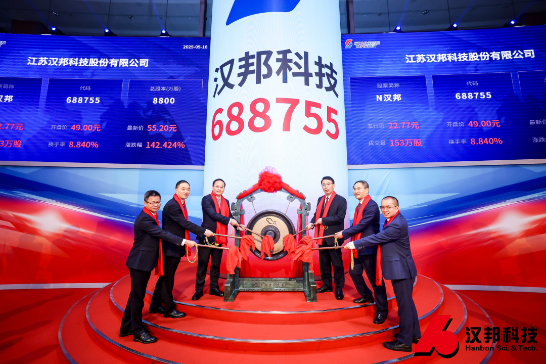 5月16日,國內色譜分離純化裝備領先江蘇漢邦科技股份有限公司(股票簡稱“漢邦科技”,股票代碼“688755”)登陸正式資本市場。