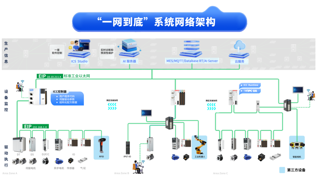 “一網到底”架構打破數據孤島,深度融合IT與OT,為工藝優化、異常回溯、預測性維護以及5G工業互聯提供數據支撐。通過確定性傳輸和低延遲技術,確保關鍵數據實時、準確傳遞,為智能工廠建設奠定堅實基礎。