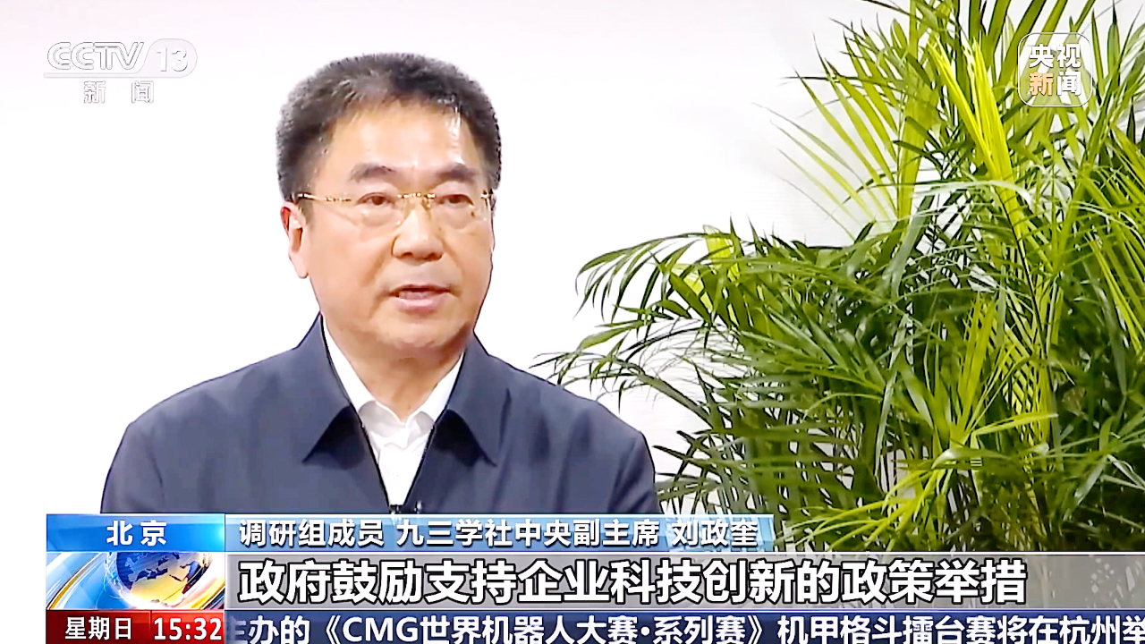 5月26日,央視新聞頻道(CCTV-13)重點報道:受中共中央委托,九三學社中央圍繞“優化企業創新生態、加速發展新質生產力”主題赴浙江開展年度重點調研。