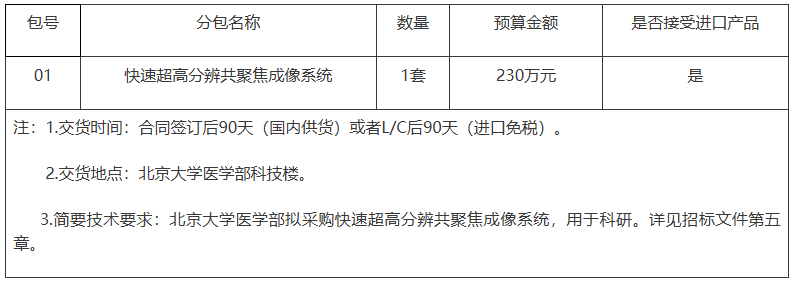 項目名稱:北京大學(xué)醫(yī)學(xué)部快速超高分辨共聚焦成像系統(tǒng)采購項目