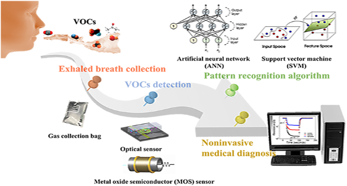 機器學(xué)習與模式識別技術(shù)賦予傳感器解析復(fù)雜氣體 “指紋” 的能力。浙江大學(xué)鄔建敏團隊基于石墨烯基嗅覺傳感器陣列,通過機器學(xué)習分析信號,結(jié)合 RF、Lasso、SVM 加權(quán)融合模型,提升了呼吸道感染類型檢測的魯棒性與準確性;瑞典林雪平大學(xué)與國家法醫(yī)學(xué)委員會團隊采用 32 個 MOS 氣體傳感器陣列,結(jié)合自適應(yīng)機器學(xué)習算法,實現(xiàn)了法醫(yī)鑒定中 VOC 的非侵入、實時分析。