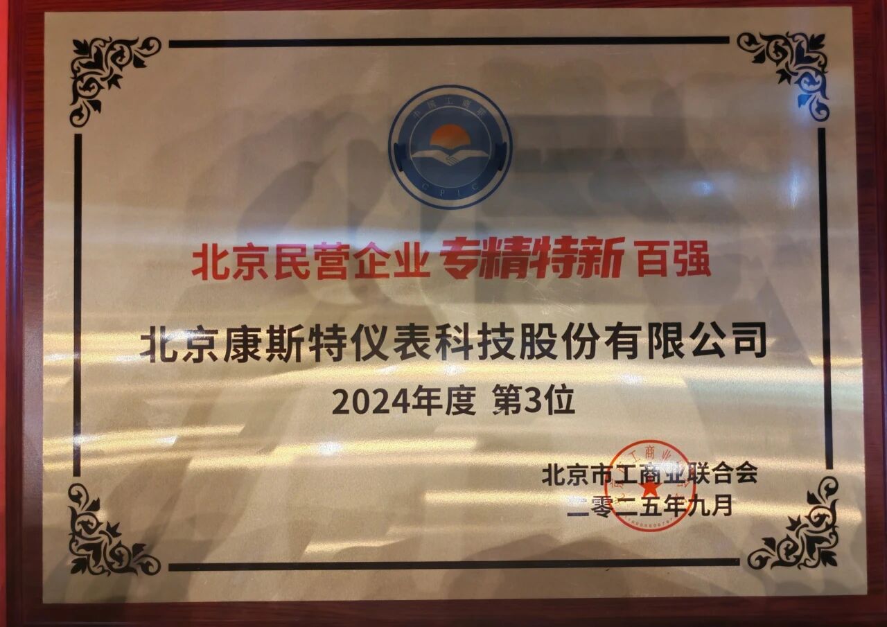 近日,“2025 北京民營(yíng)企業(yè)專精特新 100 強(qiáng)” 榜單正式發(fā)布,北京康斯特儀表科技股份有限公司憑借出色表現(xiàn)榮獲第三名,展現(xiàn)了其在民營(yíng)經(jīng)濟(jì)領(lǐng)域的強(qiáng)勁實(shí)力。