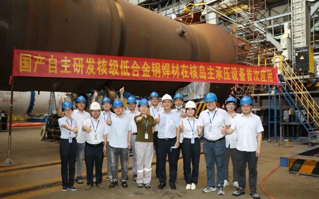 核一級設(shè)備用耐輻照、高強(qiáng)度SA-508Gr.3鋼用焊材料以“國和一號”蒸汽發(fā)生器為依托,2019年,東方重機(jī)、上海核工院與四川大西洋聯(lián)合創(chuàng)建核電焊接材料國產(chǎn)化產(chǎn)學(xué)研用平臺,合作期間,三方共同開展了不銹鋼、低合金鋼、鎳基三大類共18種牌號焊材的研發(fā)與應(yīng)用研究。2021年6月,成功應(yīng)用于“國和一號”蒸汽發(fā)生器最終環(huán)縫,無損檢測與理化性能一次性合格,實(shí)現(xiàn)了國產(chǎn)焊材在核島主設(shè)備上“零的突破”,標(biāo)志著核電焊接材料國產(chǎn)化取得重大里程碑進(jìn)展。