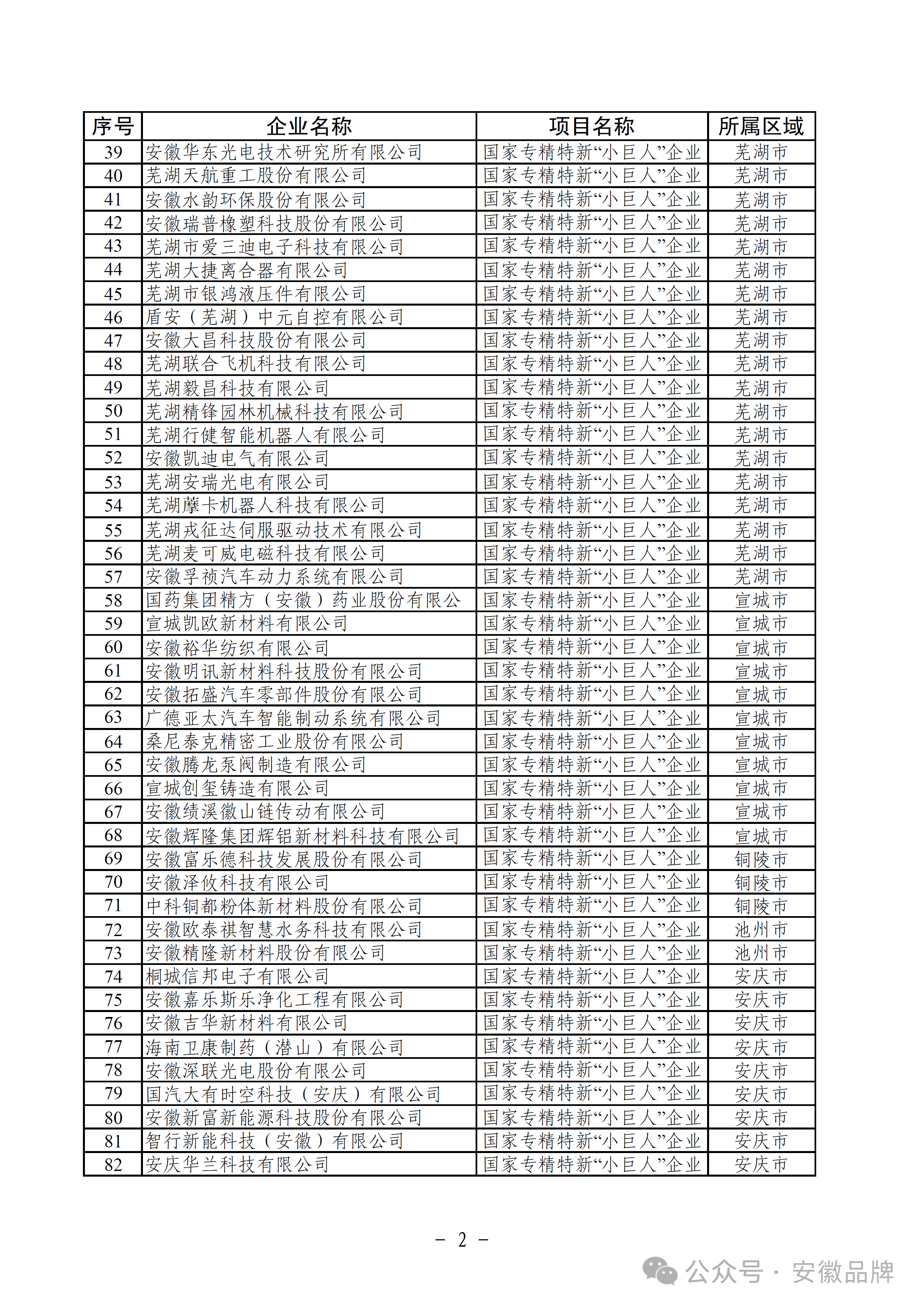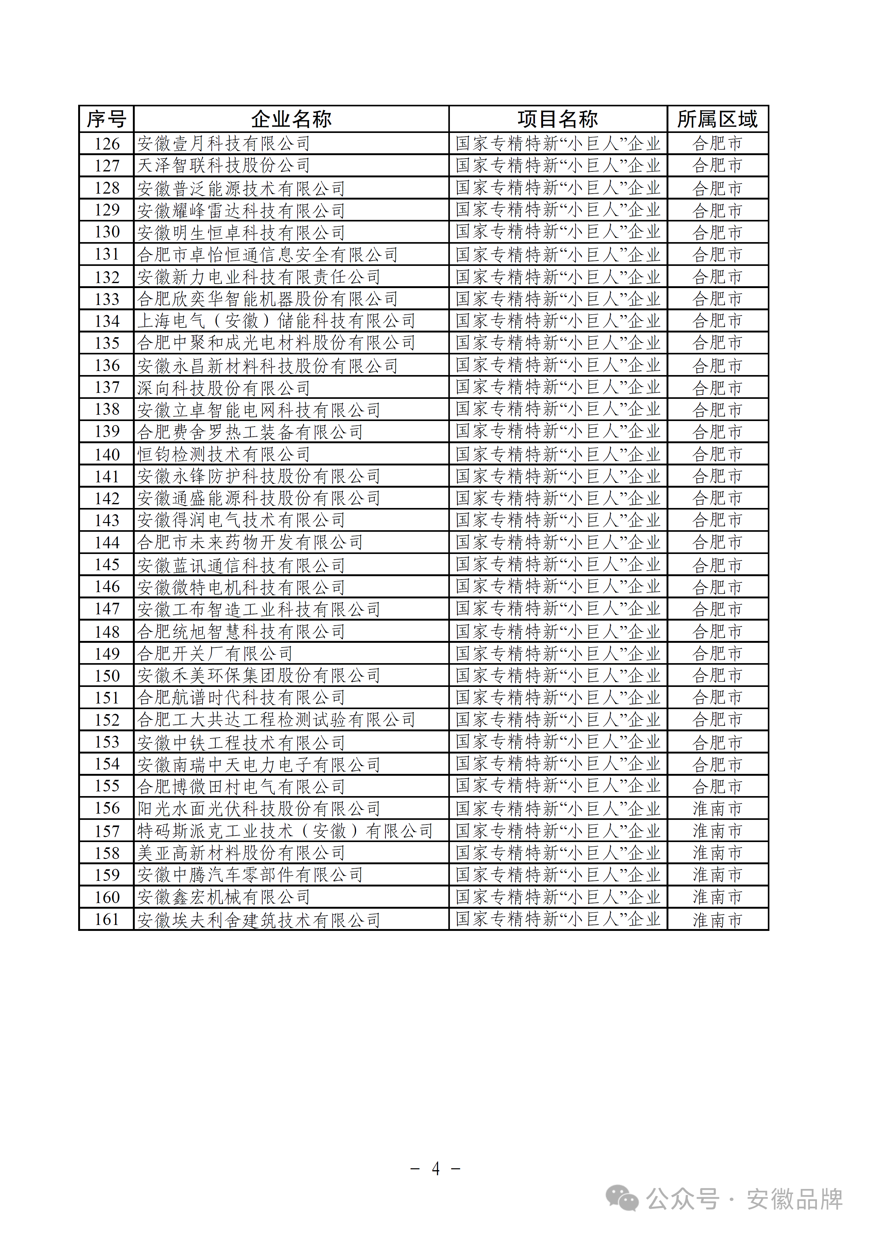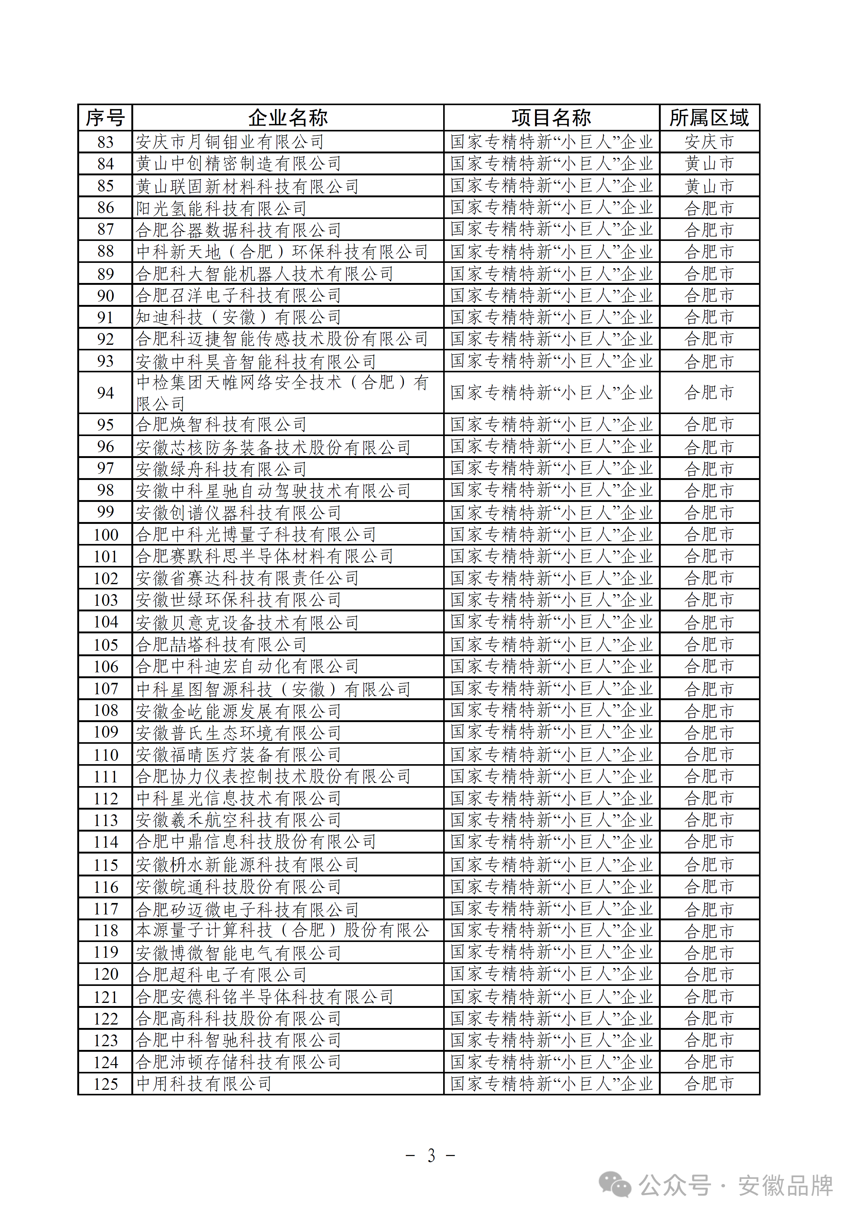 安徽省工業(yè)和信息化廳2025年國家制造業(yè)單項冠軍企業(yè)、專精特新“小巨人”企業(yè)擬支持資金項目公示