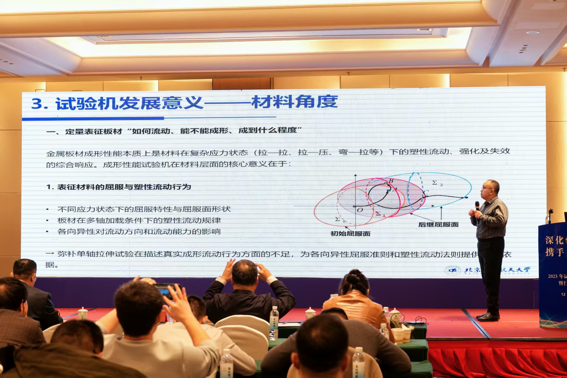 專家報告環(huán)節(jié),來自北京航空航天大學(xué)和試驗儀器行業(yè)頭部企業(yè)的專家,分別圍繞金屬材料、非金屬材料測試技術(shù)發(fā)展趨勢、高溫及極端環(huán)境應(yīng)用、硬度、平衡機技術(shù)發(fā)展以及未來趨勢等主題發(fā)表精彩演講。