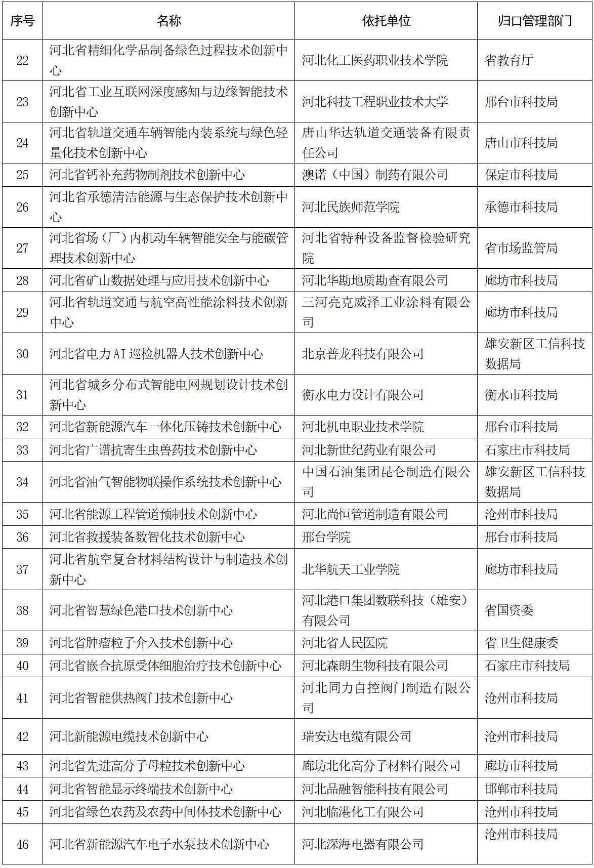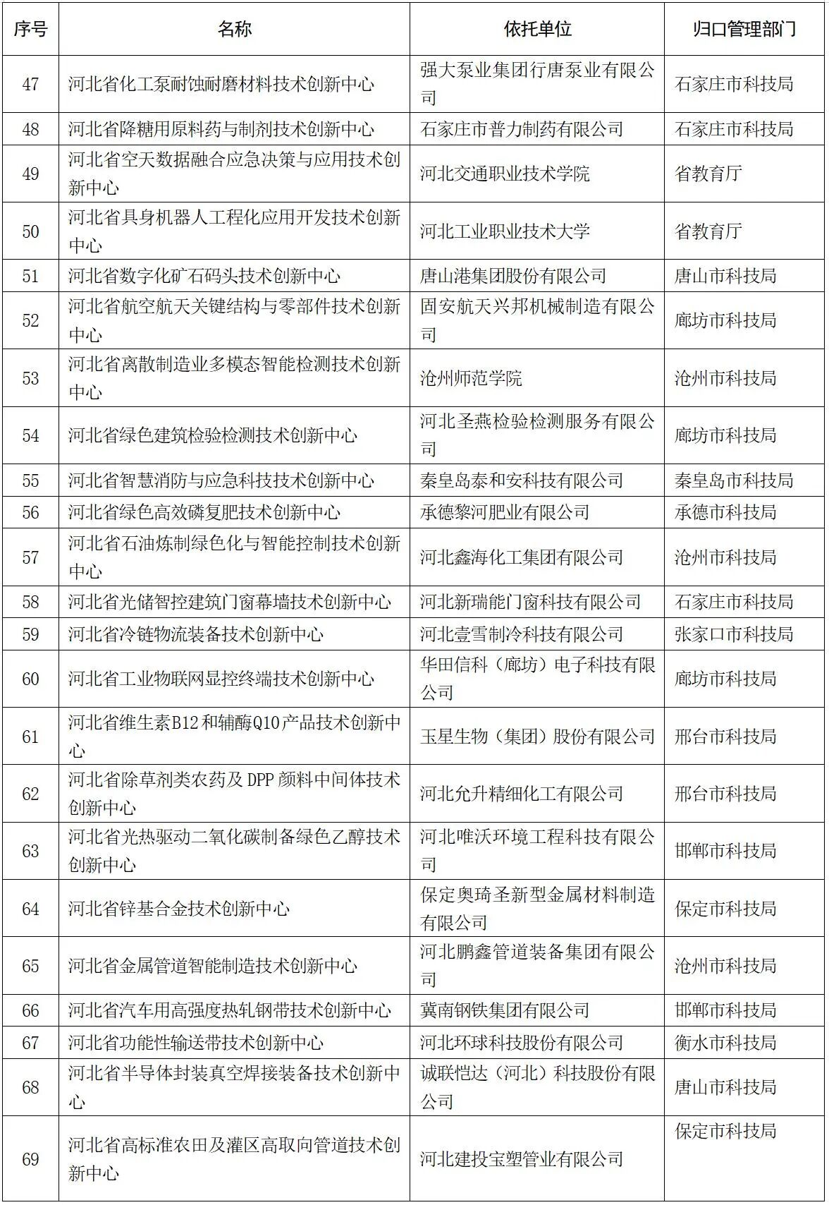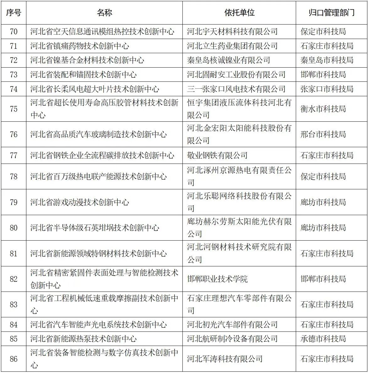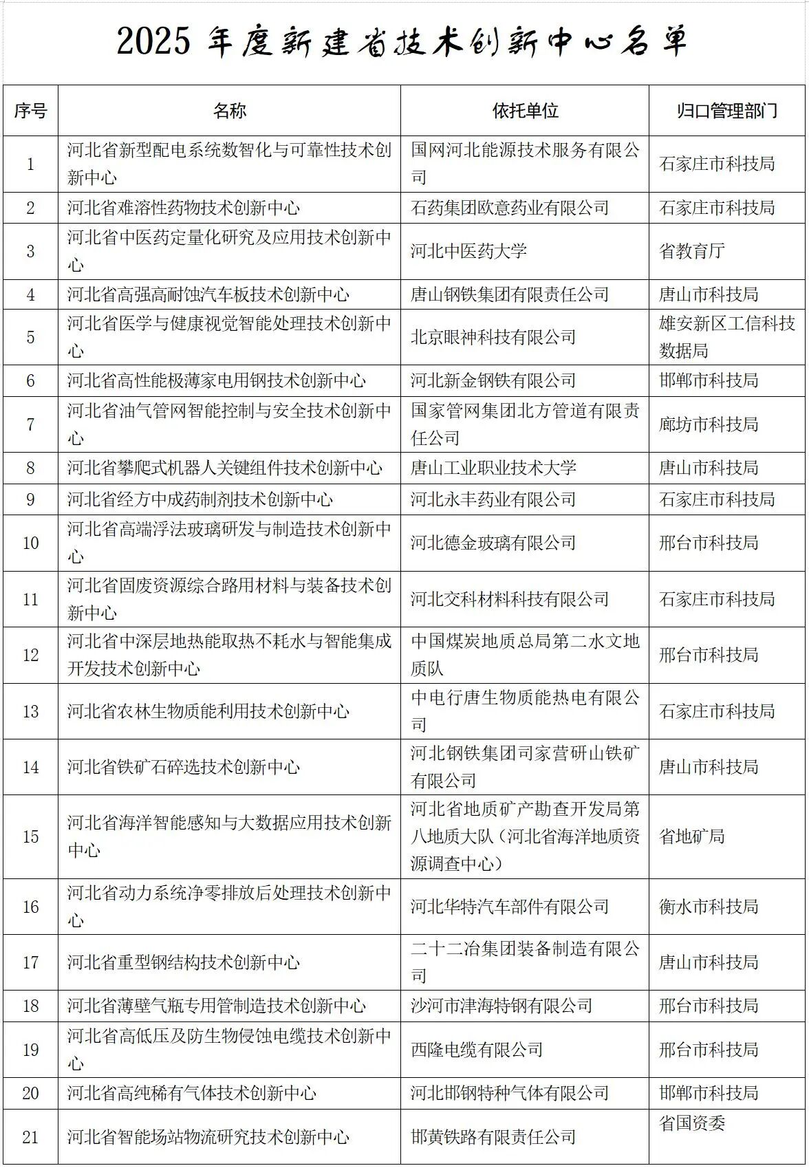 河北省科學技術廳關于公布2025年新建省重點實驗室和省技術創新中心名單的通知
