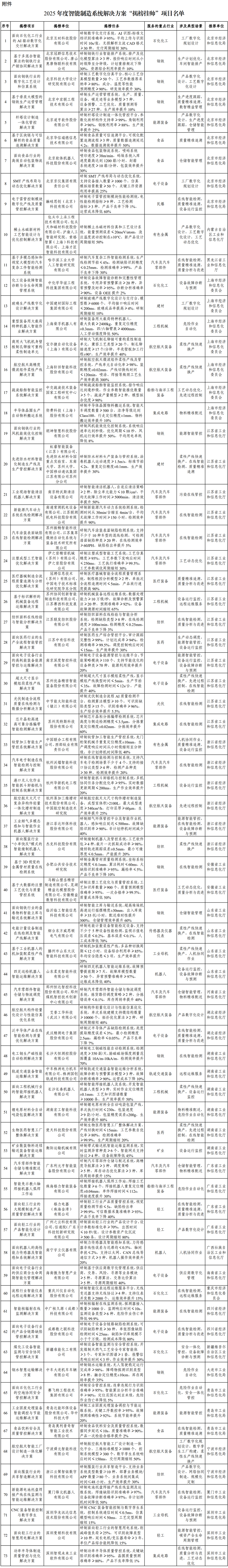 附件:2025年度智能制造系統解決方案“揭榜掛帥”項目名單
