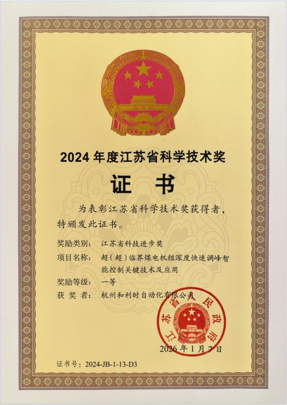 和利時煤電智能化創新成果獲浙江、江蘇科技進步獎認可