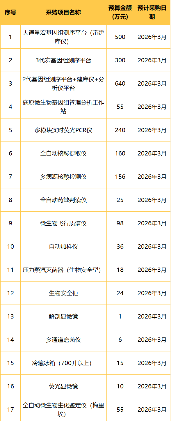為便于供應(yīng)商及時了解政府采購信息,根據(jù)《財政部關(guān)于開展政府采購意向公開工作的通知》(財庫〔2020〕10號)等有關(guān)規(guī)定,現(xiàn)將“十五五“儀器設(shè)備項目2026年2月至12月政府采購意向公開如下: