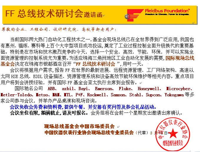FF總線技術(shù)研討會邀請函